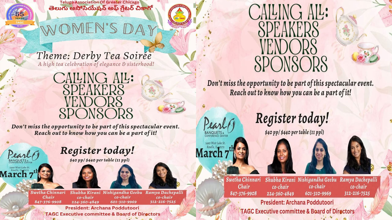 - TAGC: చికాగోలో ఘనంగా అంతర్జాతీయ మహిళా దినోత్సవ వేడుకలు.. TAGC ఆధ్వర్యంలో ‘డెర్బీ టీ సోయిరీ’