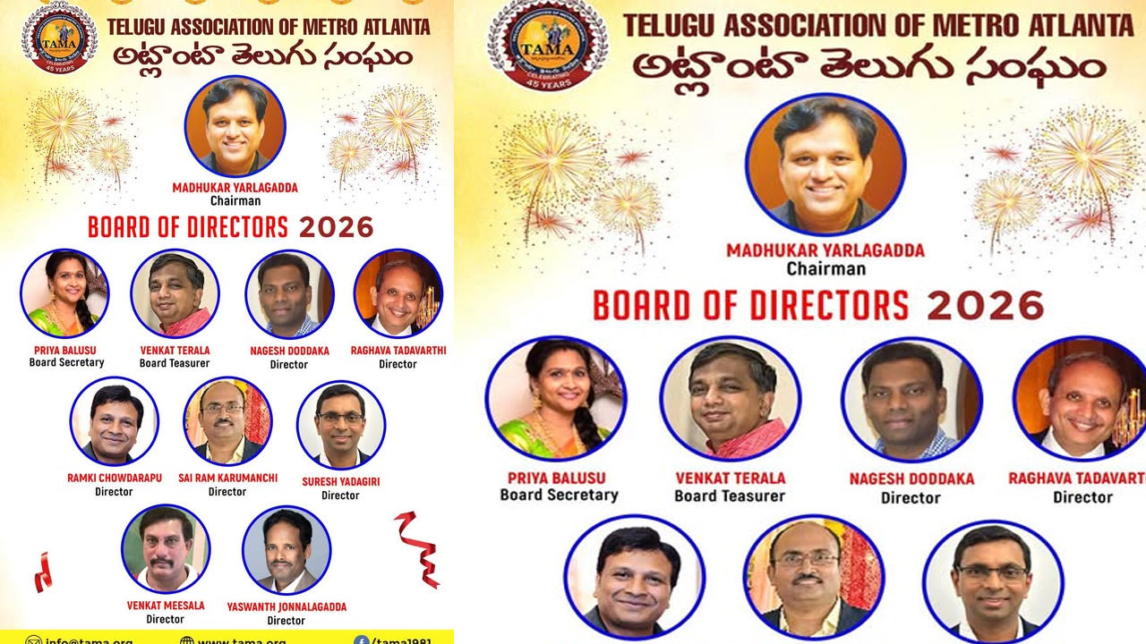 - TAMA: టామా నూతన బోర్డ్ ఆఫ్ డైరెక్టర్స్ ఎన్నిక..