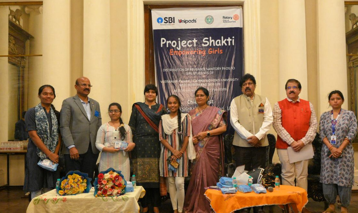 మహిళల మాసిక ఆరోగ్యం మరియు సాధికారత దిశగా కీలకమైన ముందడుగుగా, రోటేరియన్లు, స్టేట్ బ్యాంక్ ఆఫ్ ఇండియా (SBI) మరియు యూనిప్యాడ్స్ ఫౌండేషన్ సంయుక్తంగా “ప్రాజెక్ట్ శక్తి ” అనే సమయోచితమైన, ప్రభావవంతమైన కార్యక్రమాన్ని ప్రారంభించారు. ఈ ప్రాజెక్ట్ ద్వారా తెలంగాణ రాష్ట్రవ్యాప్తంగా 60,000 మంది బాలిక విద్యార్థినులకు పునర్వినియోగ సానిటరీ ప్యాడ్ల అందించి వారిని సాధికారత వైపు నడిపించడం లక్ష్యంగా పెట్టుకున్నారు.