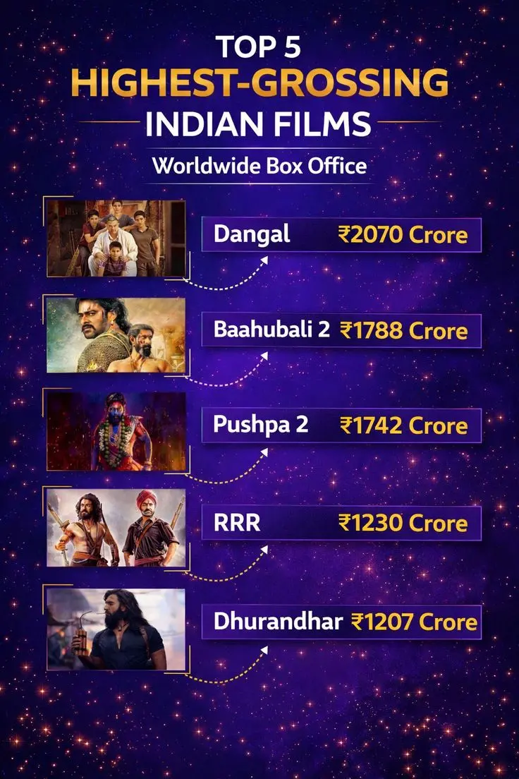 వాటిలో టాప్ సినిమాల లిస్ట్ ఏంటో తెలుసుకుందాం. ఆమిర్ ఖాన్ నటించిన దంగల్ మూవీ సుమారు రూ. 2000 కోట్లకు పైగా వసూలు చేసింది.